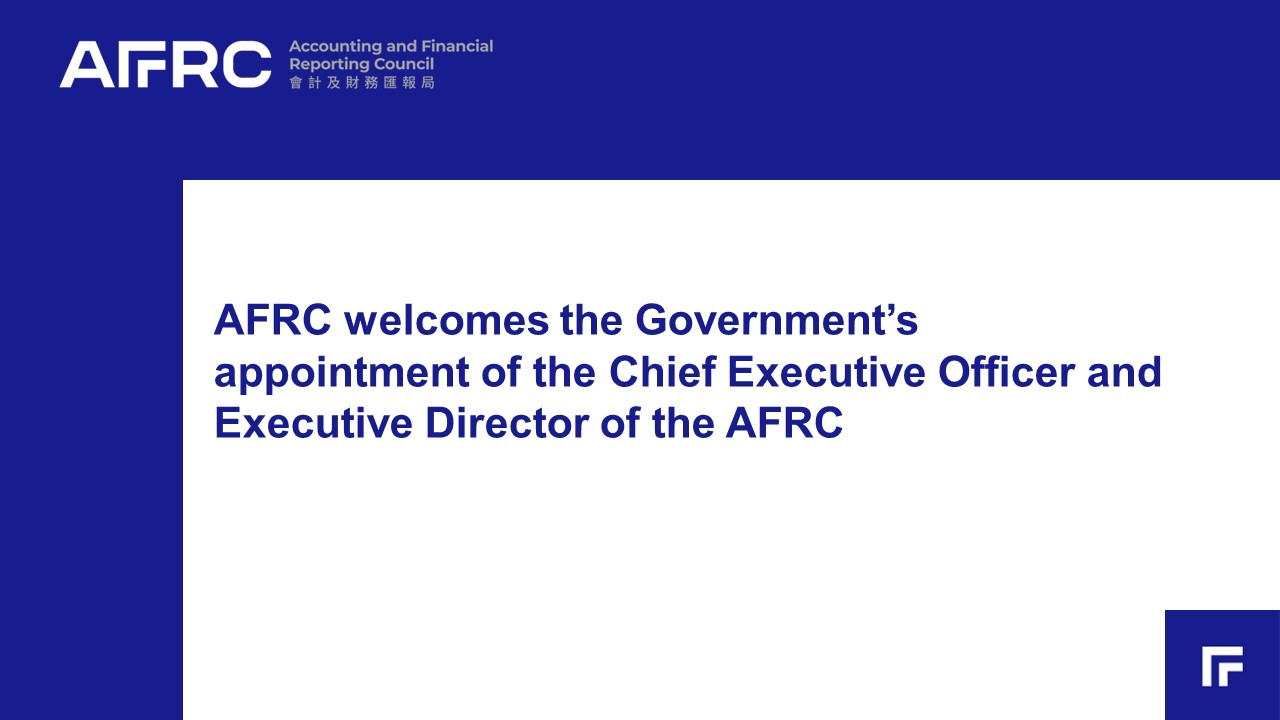 The Accounting and Financial Reporting Council (AFRC) welcomes the Chief Executive’s appointment of Ms Lai Chui-pik Janey as the Chief Executive Officer (the CEO) and Executive Director of the AFRC for a term of three years from 9 April 2024 to 8 April 2027.
